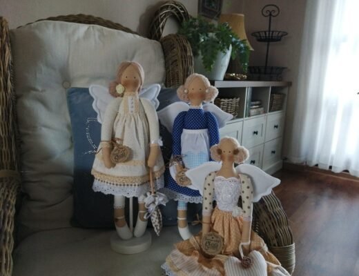 Dve bábiky z mojej dielne, v ružových odtieňoch. Vysoké sú 65 cm, môžete ich posadiť alebo zavesiť za…