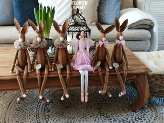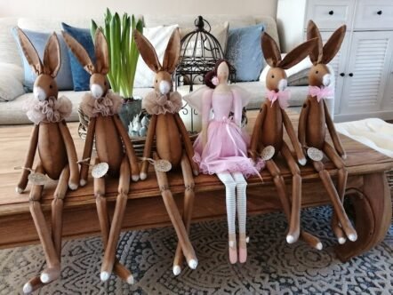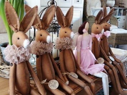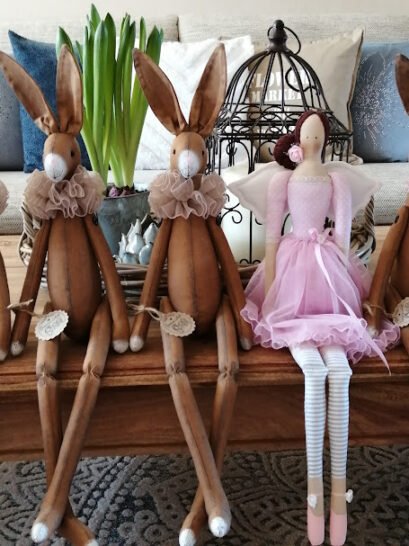 Pekný slnečný deň prajem. Ako každú nedeľu, aj dnes pripravujem balíky na zajtrajšie odoslanie, tak som krásavcom urobila ešte jedno spoločné foto. Tento týždeň boli zasa zajovia v prevahe, traja klasickí s hnedým tylovým golierikom, dvaja s ružovou mašličkou a k nim jedna ružová anjelka – baletka v tylovej sukničke. Ak sa vám čokoľvek zapáčilo, píšte. Títo majú majiteľky, ale na objednávku vyrobím.