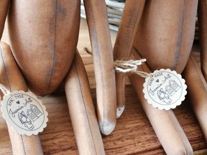 Zajo vintage naháčik, morený, patinovaný, vysoký 65 cm, 35 eur.