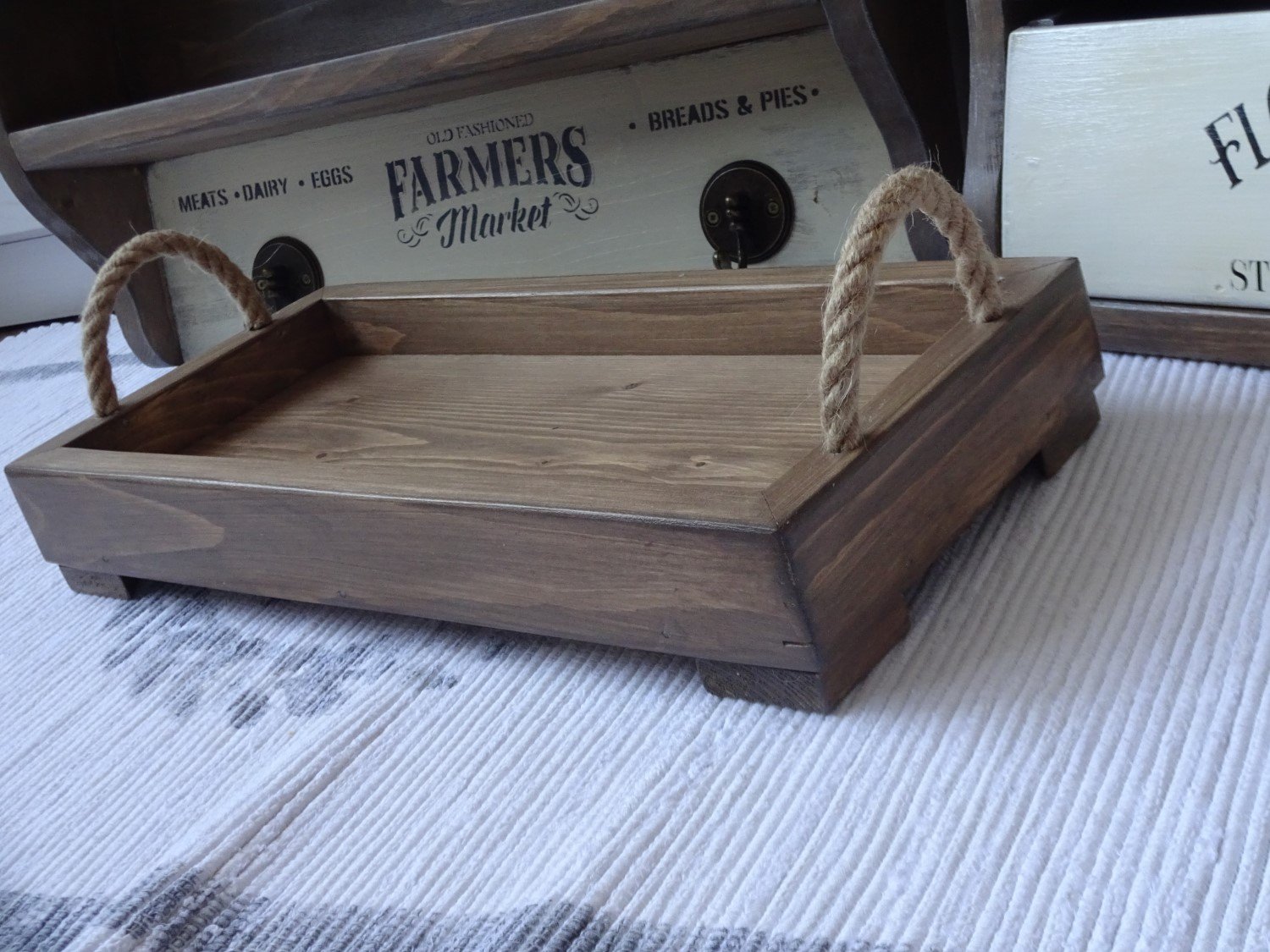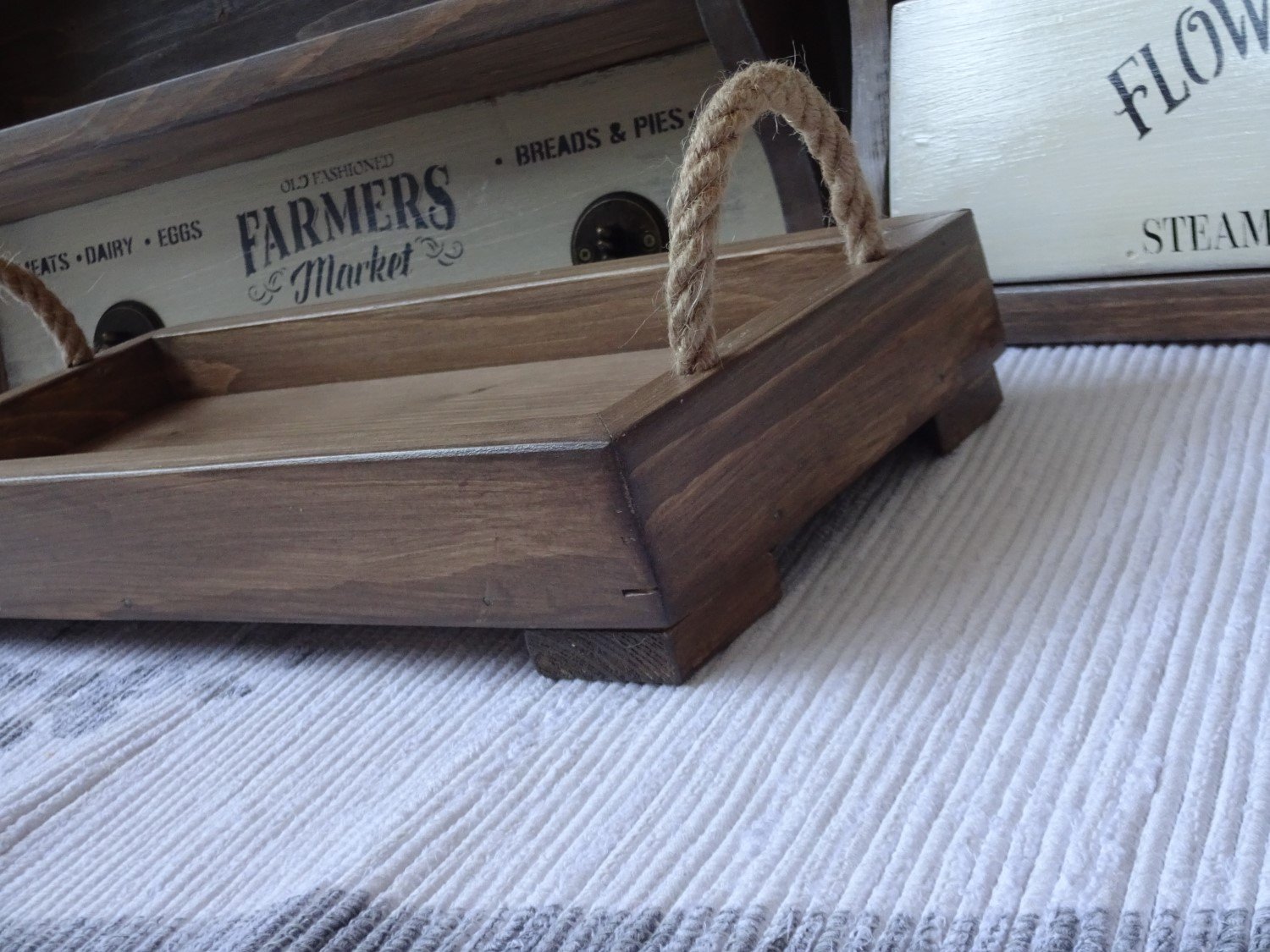 Drevený vidiecky podnos s jutovými úchytkami, na nožičkách, rozmer 40 x 19 cm, cena 39 eur. Moje výrobky si môžete pozrieť a objednať aj v mojom obchodíku na sashe TU
